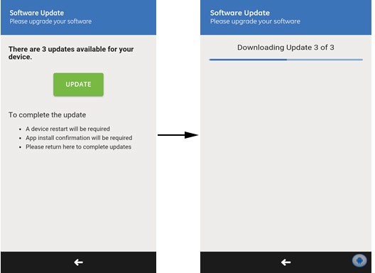 NOTE: If the device loses network connectivity (with non-clinical network) when update is getting detected or downloaded, the update process gets cancelled. Restart the update process once again.